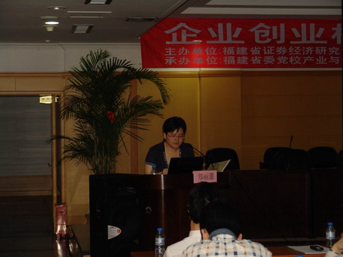 為貫徹落實《國務(wù)院關(guān)于推進(jìn)資本市場改革開放和穩(wěn)定發(fā)展的若干意見》和《福建省人民政府關(guān)于加快推進(jìn)企業(yè)上市的意見》精神,5月13日上午,福建省證券經(jīng)濟研究會、福建省生產(chǎn)力促進(jìn)協(xié)會主辦,福建省委黨校產(chǎn)業(yè)與企業(yè)發(fā)展研究院、福州市生產(chǎn)力促進(jìn)協(xié)會承辦,在福州舉辦“企業(yè)創(chuàng)業(yè)板上市研討班”。有關(guān)科技園區(qū)、創(chuàng)業(yè)中心的領(lǐng)導(dǎo)及60多家企業(yè)負(fù)責(zé)人共約100多人參加了研討班。研討班由福建省委黨校產(chǎn)業(yè)與企業(yè)發(fā)展研究院副院長林紅教授主持,福建省委黨校產(chǎn)業(yè)與企業(yè)發(fā)展研究院院長陳明森教授,福建省生產(chǎn)力促進(jìn)中心主任朱祥枝博士,福建省生產(chǎn)力促進(jìn)協(xié)會秘書長、福建省生產(chǎn)力促進(jìn)中心副主任李金算研究員出席了研討會開班儀式。李金算秘書長代表福建省生產(chǎn)力促進(jìn)協(xié)會致辭。