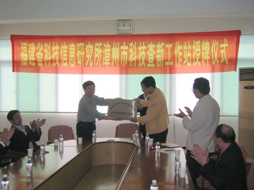 福建省科技信息研究所所長、研究員朱祥枝同志為“漳州科技查新工作站”授牌,并舉行了現(xiàn)場簽字儀式。漳州市科技局局長徐建成同志出席了授牌儀式。