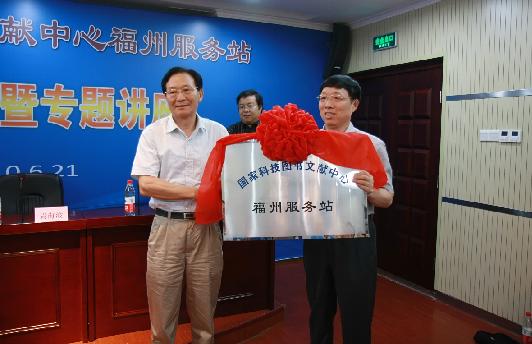6月21日,國(guó)家科技圖書(shū)文獻(xiàn)中心福州服務(wù)站開(kāi)通儀式暨專題講座在福州舉行。省科技廳副廳長(zhǎng)李堂杰出席儀式并致辭,國(guó)家科技圖書(shū)文獻(xiàn)中心主任到會(huì)致辭并向省科技信息研究所授“國(guó)家科技圖書(shū)文獻(xiàn)中心福州服務(wù)站”牌。