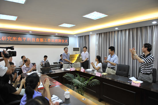 省科技信息所所長、研究員朱祥枝為“南平科技查新工作站”授牌。南平市科技局葉治平局長、張仲甫副局長、南平市科技情報研究所翁翹所長以及省科技信息所業務管理科科長王良熙、檢索查新室主任洪凡等參加了授牌儀式。