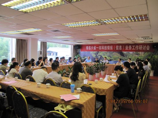 2012年9月3日—7日,由省科技信息所承辦的2012年度華東六省一市科技情報院(所)情報研究室主任、科技查新室主任工作研討會在武夷山市召開。華東六省一市科技情報(信息)研究院(所)、中國科技信息研究所戰略研究中心、浙江省科技廳(浙江省科技發展戰略研究院)、遼寧省科技情報研究所、寶鋼股份研究院情報研究中心、廈門市科技情報所、南平市科技局和南平市科技情報所等14個單位的50余名代表參加了會議。研討會由省信息所朱祥枝所長主持。南平市科技局葉治平局長、黃慶聯副局長到會祝賀。
