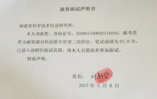 放棄面試人員:劉新哲1702001(準(zhǔn)考證號(hào)),分?jǐn)?shù)67.8,排名第三;遞補(bǔ)入闈面試人員:凌群 1702003(準(zhǔn)考證號(hào)),分?jǐn)?shù)67.7,排名第四。