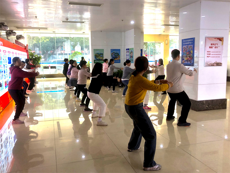 活動吸引了眾多職工的積極參與。在福建體育職業(yè)技術(shù)學(xué)院老師專業(yè)且生動的授課中,大家迅速掌握了動作精髓,在練習(xí)過程中相互學(xué)習(xí)、相互鼓勵,形成了良好的團隊氛圍。活動結(jié)束后,參與職工紛紛表示,不僅在運動中體驗到了傳統(tǒng)健身文化的魅力,還充分感受到八段錦帶來的身心愉悅和健康生活的重要性,適當?shù)腻憻捴竽芤愿语枬M的精神狀態(tài)投入工作。